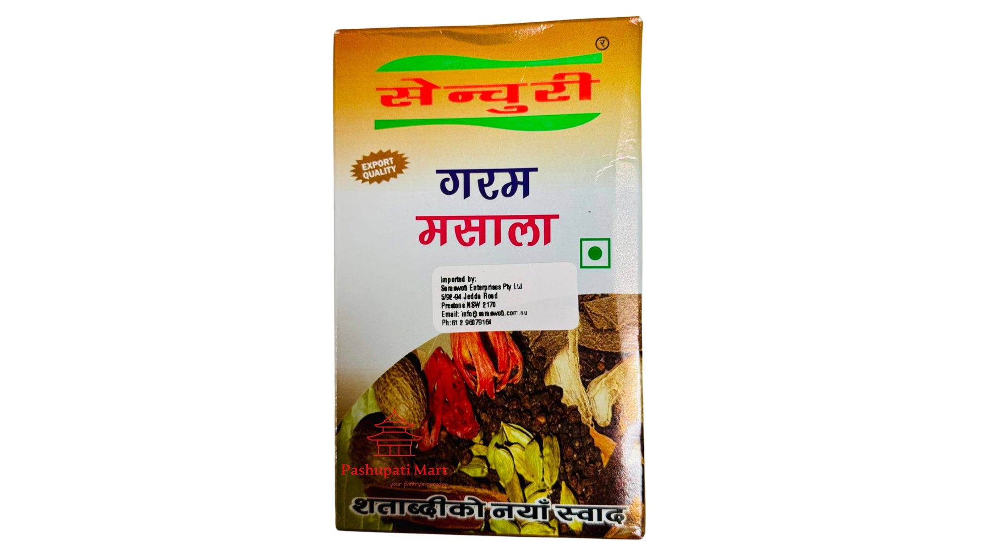 Experience the authentic spice blend of Nepal with Century Garam Masala from Pashupati mart. Made in Nepal, this 50gm blend is perfect for adding a touch of traditional flavor to all your dishes. Elevate your cooking with this premium spice mix.