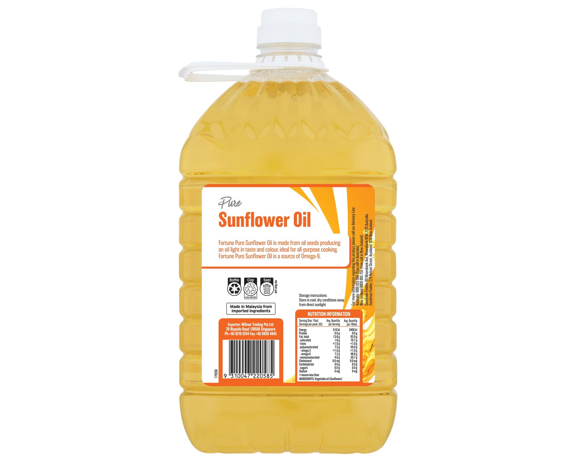 Fortune Pure Sunflower Oil is made from oil seeds producing an oil light in taste and colour, ideal for all-purpose cooking. Fortune Pure Sunflower Oil is a source of Omega-6. .