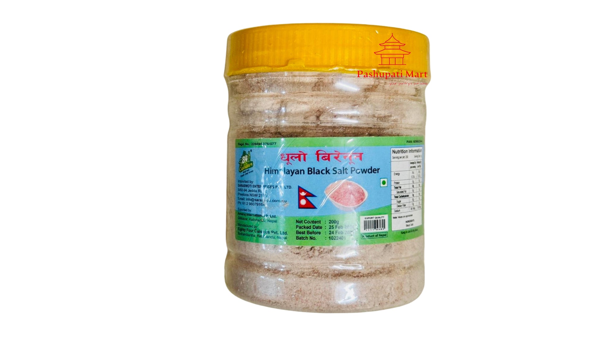 Discover the unique flavor of Himalayan Black Salt Powder. Sourced from Nepal by Pashupati Mart, this 200gm product is sure to elevate any dish with its distinct taste. A must-have for any culinary expert, this salt is rich in minerals, giving your meals a healthy boost.
