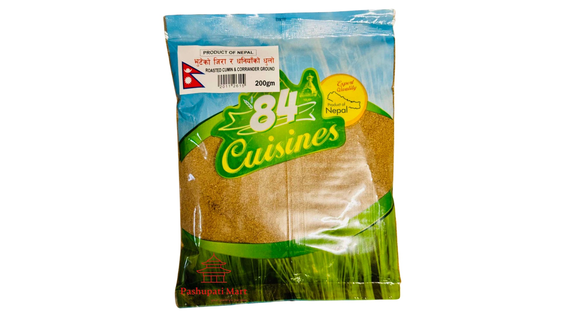 Discover the rich flavors of Nepal with Pashupati Mart's Roasted Cumin and Coriander Ground. Made from high-quality ingredients, this 200gm spice blend adds a smoky and earthy touch to any dish. Let the bold taste and aroma of roasted cumin and coriander elevate your cooking to new heights.