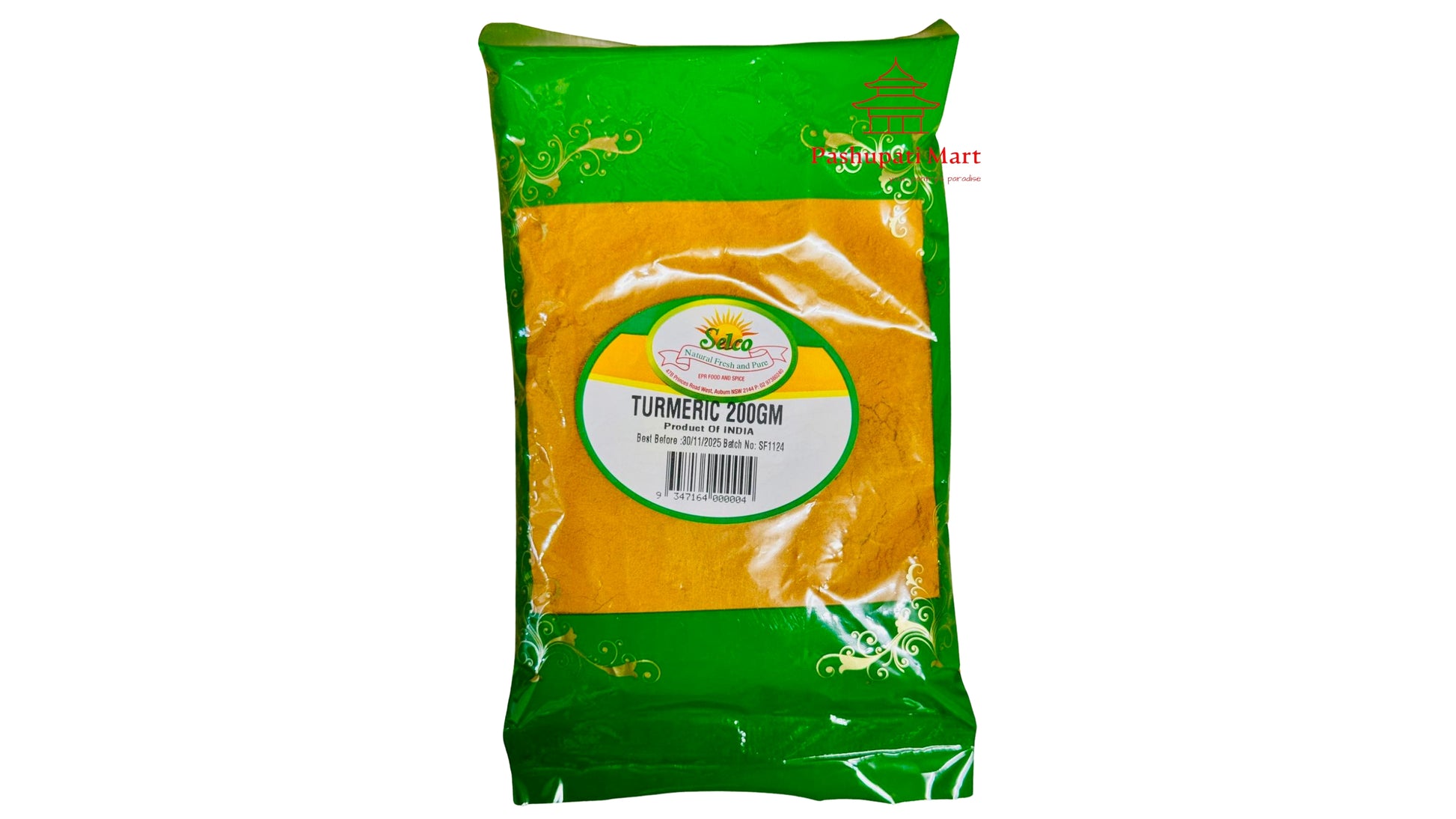 Introducing Selco Turmeric, a 200gm product of India brought to you by Pashupati Mart. This high-quality turmeric is known for its health benefits and is perfect for cooking, beauty routines, and natural remedies. Experience the authentic taste and powerful properties of Selco Turmeric.